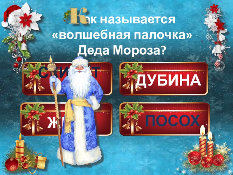 ДУБИНАПОСОХЖЕЗЛСКИПЕТР   ак называется «волшебная палочка»  Деда Мороза?