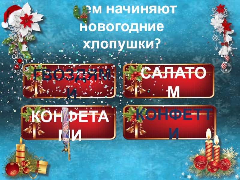 САЛАТОМКОНФЕТТИКОНФЕТАМИГВОЗДЯМИ   ем начиняют новогодние хлопушки?