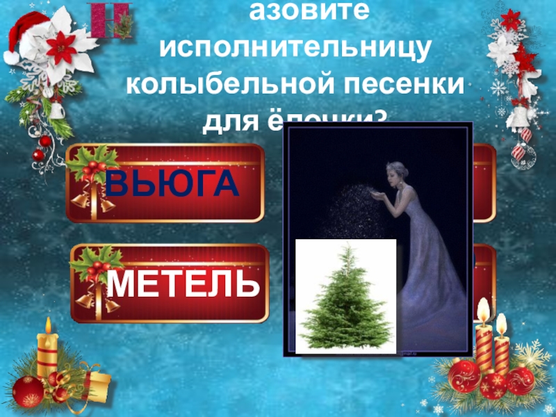 ВЬЮГАМЕТЕЛЬПУРГАИЗМОРОЗЬ  азовите исполнительницу колыбельной песенки для ёлочки?
