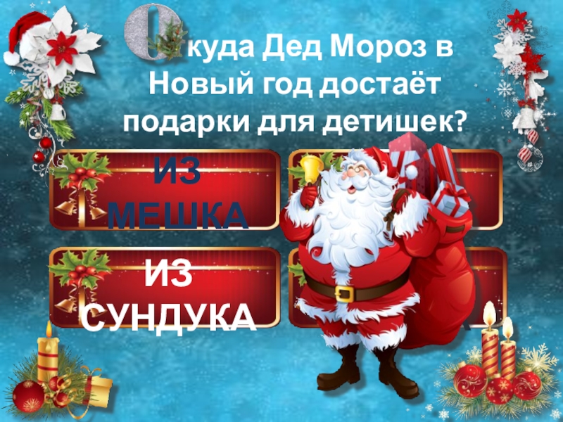 ИЗ НОСКАИЗ МЕШКАИЗ СУНДУКАИЗ СЕЙФА   ткуда Дед Мороз в Новый год достаёт подарки для детишек?