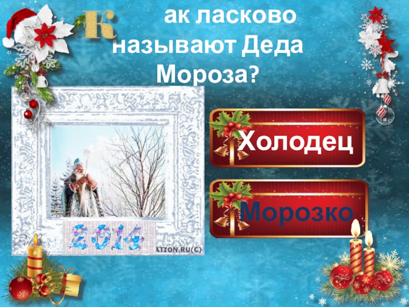 ХолодецМорозкоМорозилкаМорозец    ак ласково называют Деда Мороза?