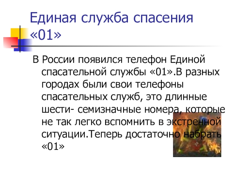 Нужно 01 набрать и быстрей пожарных звать!