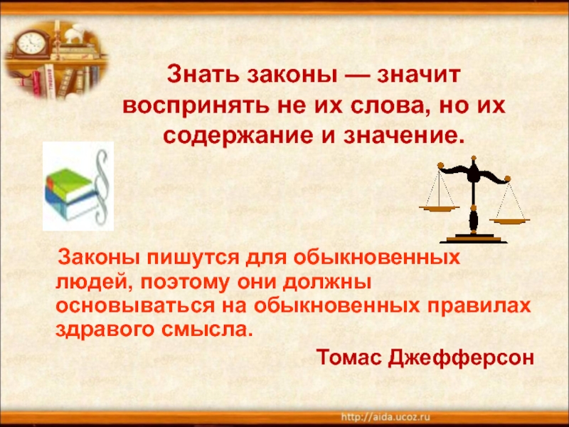 Законы пишутся для обыкновенных людей, поэтому они должны основываться на обыкновенных правилах здравого смысла.