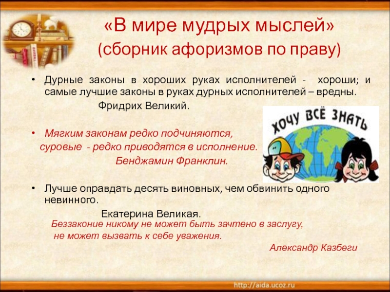 Дурные законы в хороших руках исполнителей - хороши; и самые лучшие законы в руках дурных исполнителей – вредны.