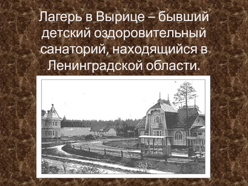 Слайд 2Лагерь в Вырице – бывший детский оздоровительный санаторий, находящийся в Ленинградской