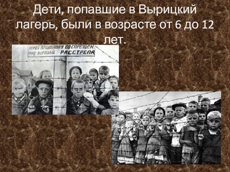 Слайд 4Дети, попавшие в Вырицкий лагерь, были в возрасте от 6 до