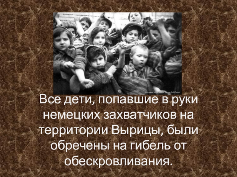 Слайд 3Все дети, попавшие в руки немецких захватчиков на территории Вырицы, были