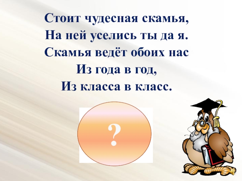 Слайд 20Стоит чудесная скамья,