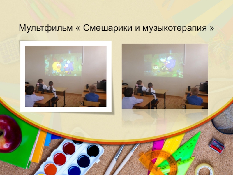 Слайд 4Мультфильм « Смешарики и музыкотерапия »
