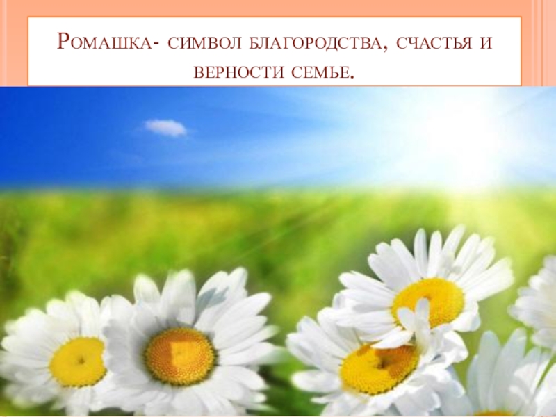 Слайд 5Ромашка- символ благородства, счастья и верности семье.