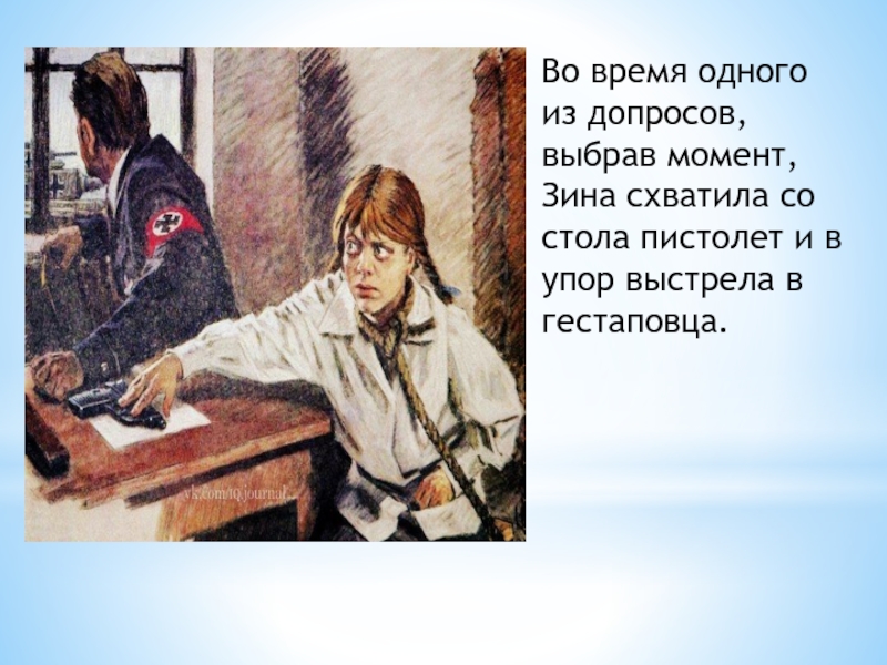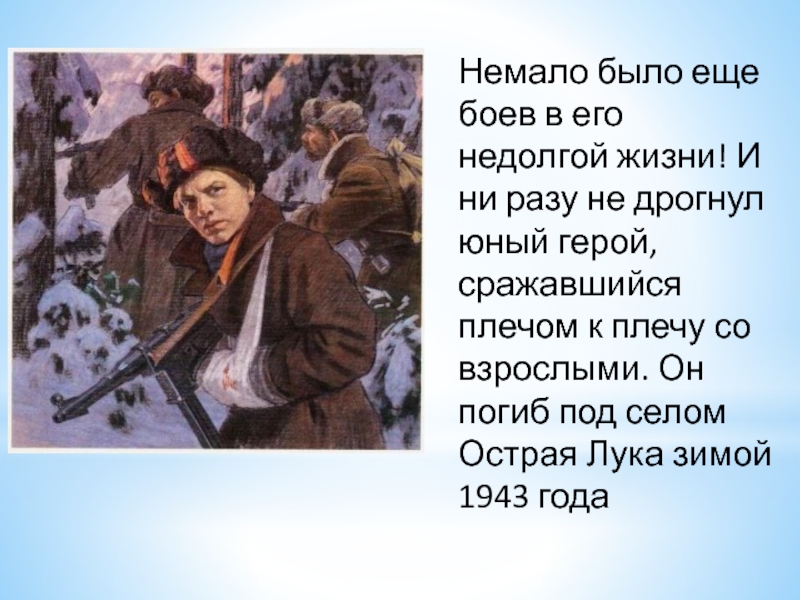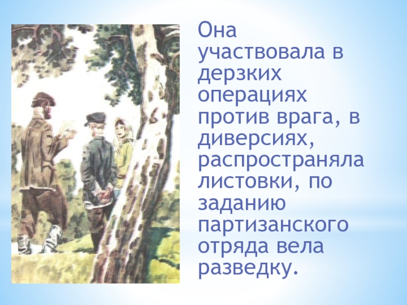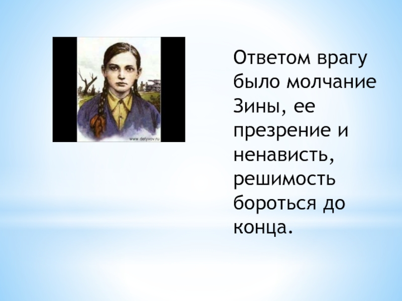 Отважная юная пионерка была зверски замучена, но до последней минуты оставалась стойкой, мужественной, несгибаемой.