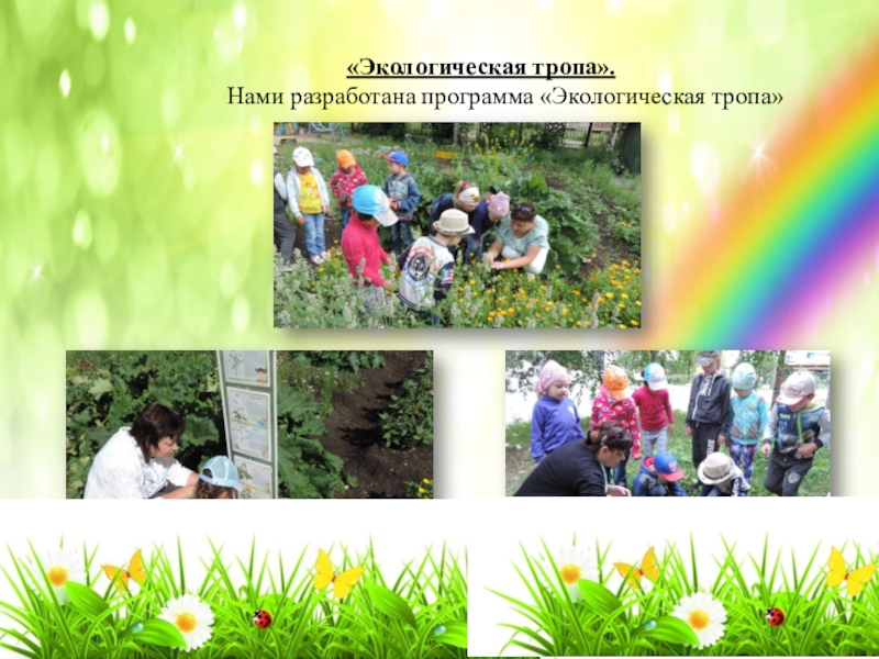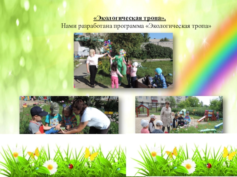 На стенде «Экологическая тропа» собраны фотоматериалы нашей работы за летний оздоровительный период для родителей и детей.