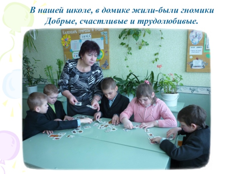 В нашей школе, в домике жили-были гномикиДобрые, счастливые и трудолюбивые.