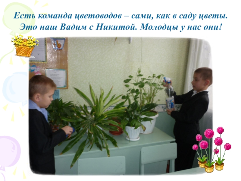Есть команда цветоводов – сами, как в саду цветы.Это наш Вадим с Никитой. Молодцы у нас они!