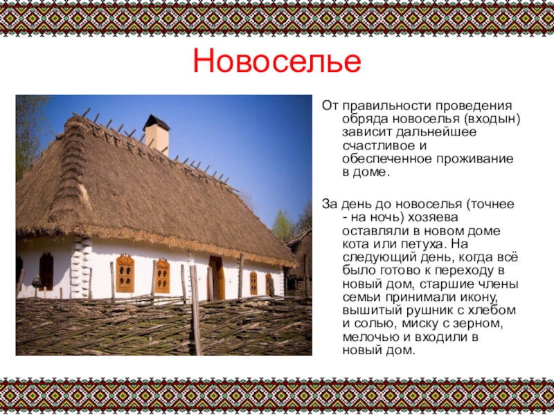 От правильности проведения обряда новоселья (входын) зависит дальнейшее счастливое и обеспеченное