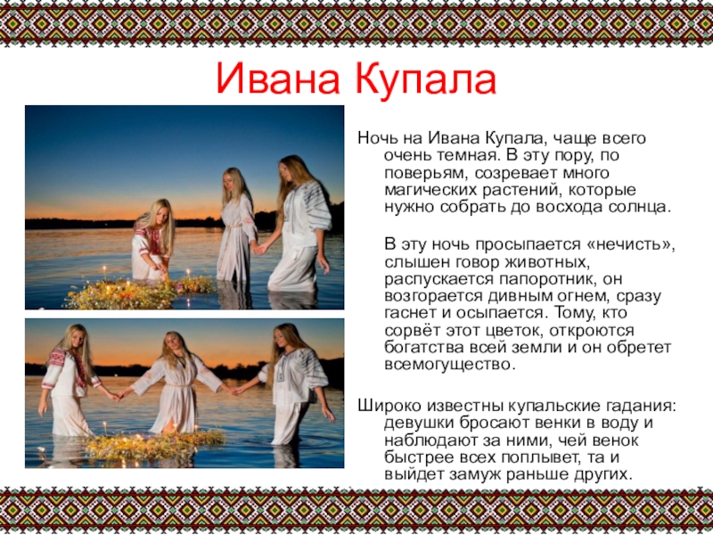 Ивана Купала, так же Иванов день, — является одним