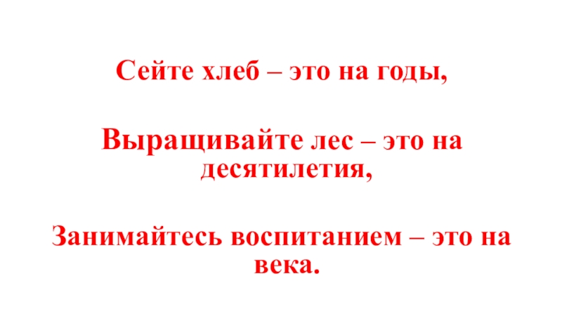 Сейте хлеб – это на годы,Выращивайте лес – это на десятилетия,Занимайтесь воспитанием – это на века.