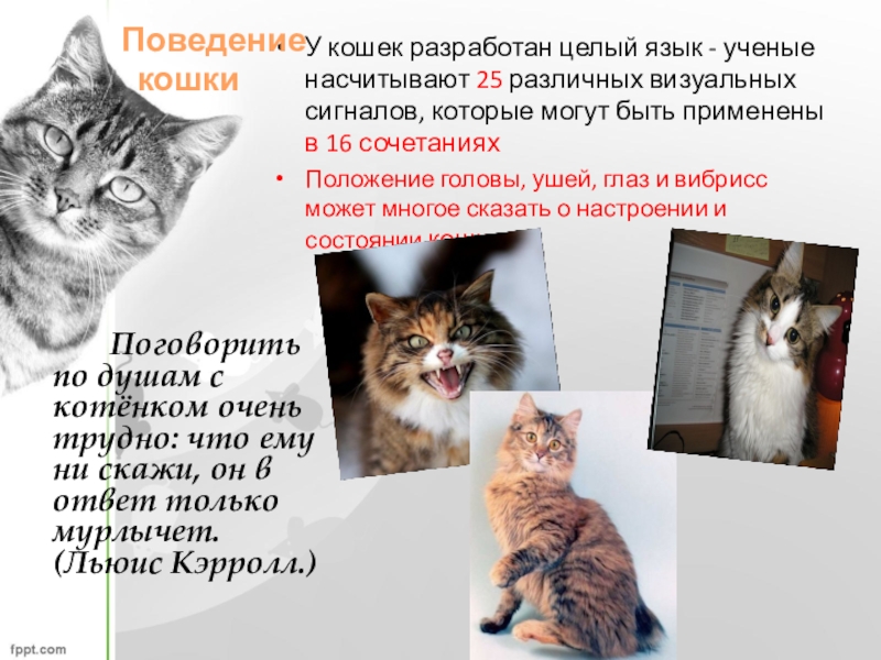Предмет исследования: поведение кошек