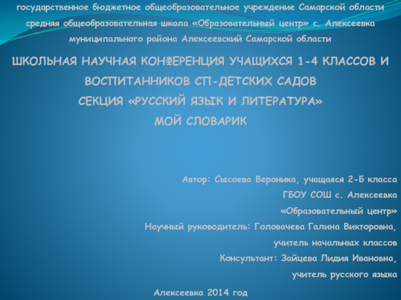 Научный руководитель: Головачева Галина Викторовна,
