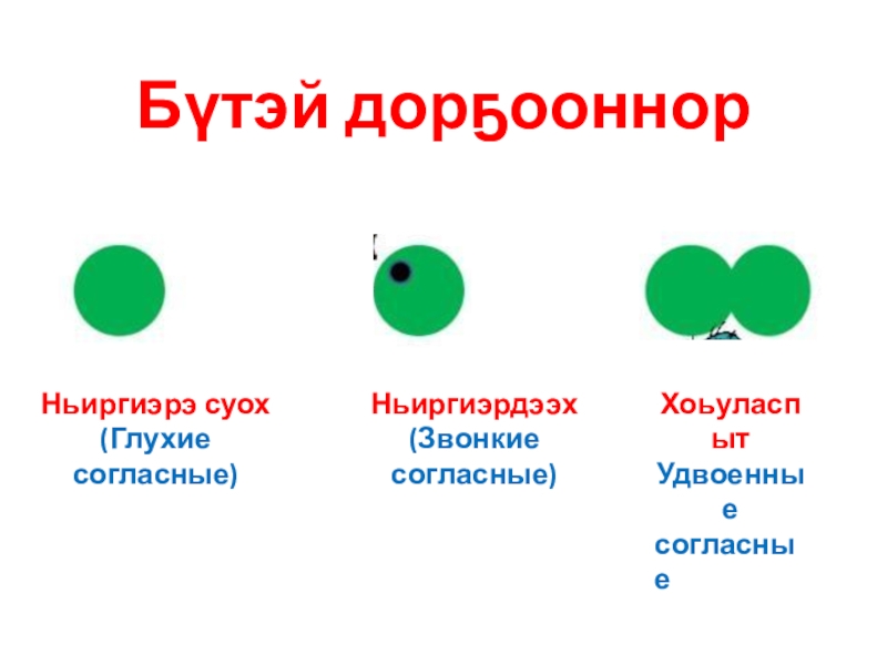 Бүтэй дорҕооннорНьиргиэрэ суох(Глухие согласные)Ньиргиэрдээх(Звонкие согласные)ХоьуласпытУдвоенныесогласные