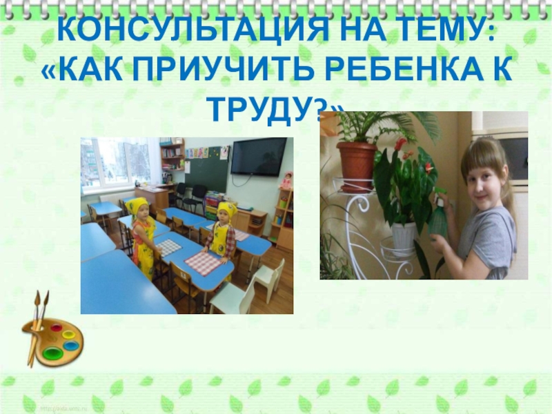 Слайд 4КОНСУЛЬТАЦИЯ НА ТЕМУ: «КАК ПРИУЧИТЬ РЕБЕНКА К ТРУДУ?»