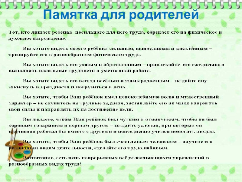 Презентация, доклад на педагогический совет на тему :Трудовое воспитаниег