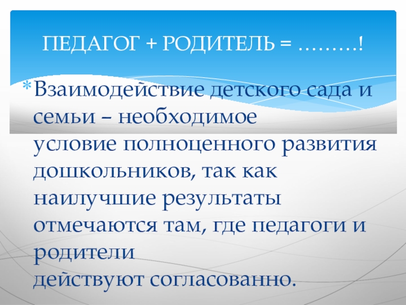 ПЕДАГОГ + РОДИТЕЛЬ = ………!