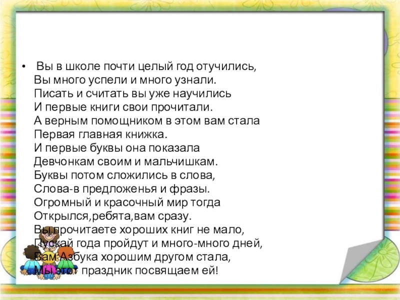 Это сайт презентаций, где можно хранить и обмениваться своими презентациями, докладами, проектами, шаблонами в формате PowerPoint с другими пользователями. Мы помогаем школьникам, студентам, учителям, преподавателям хранить и обмениваться учебными материалами.