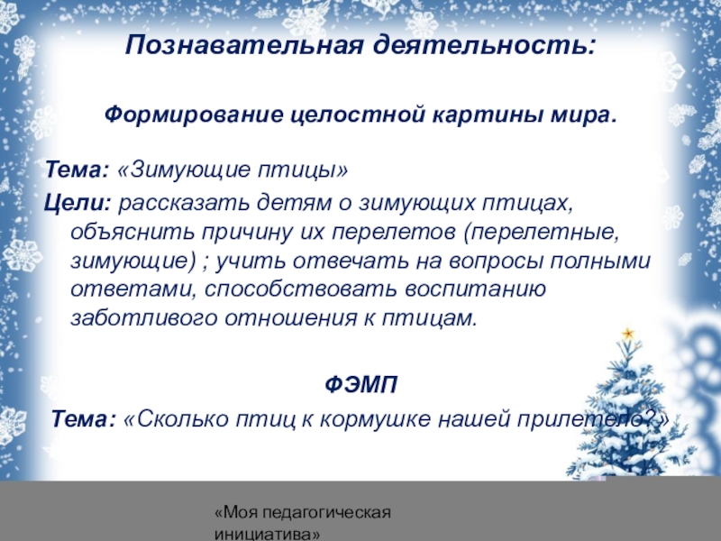 2. Расширить кругозор детей о зимующих птицах.