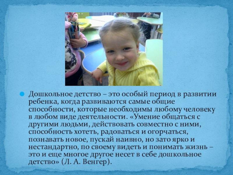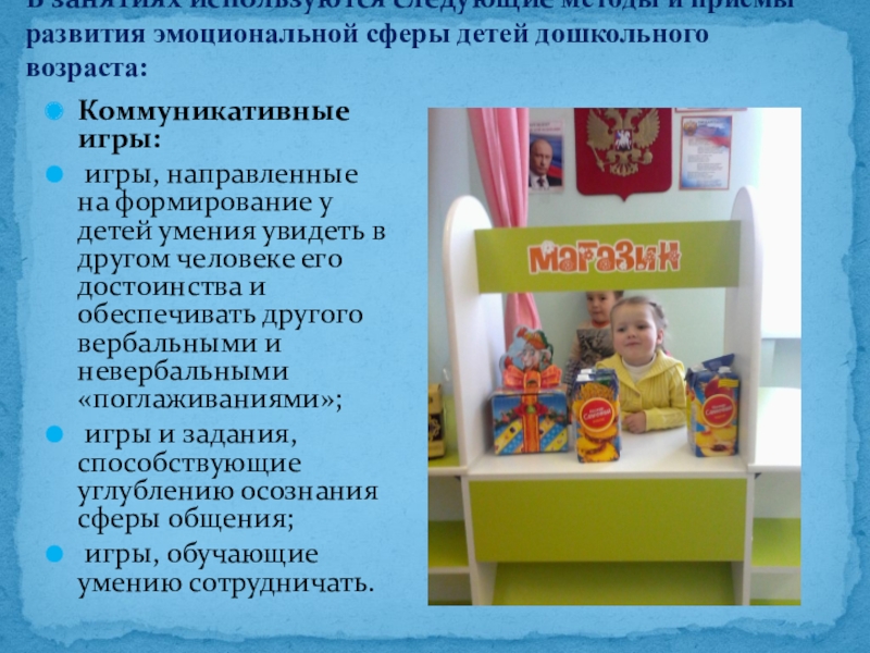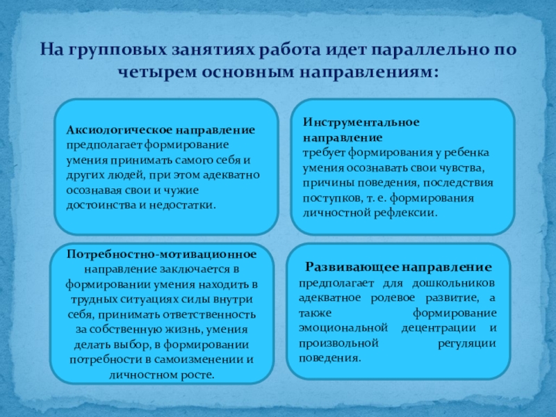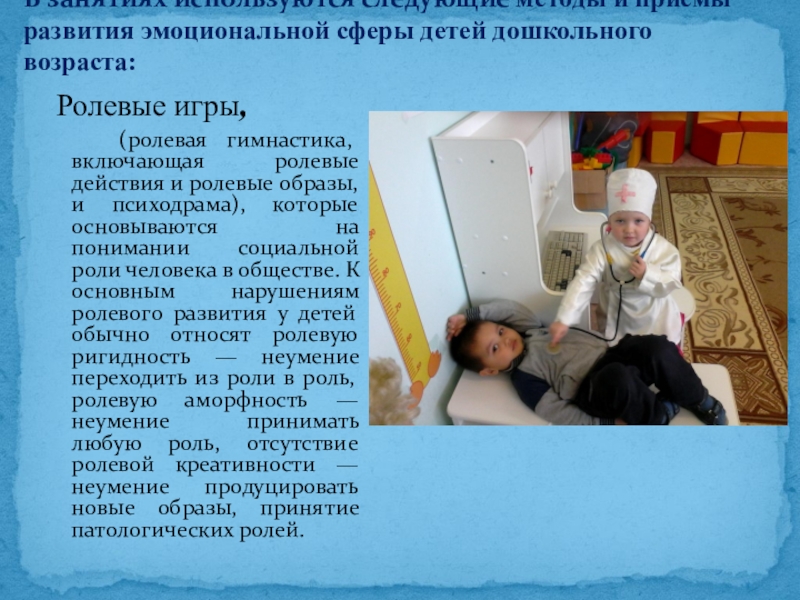 предполагает для дошкольников адекватное ролевое развитие, а также формирование эмоциональной децентрации и произвольной регуляции поведения.