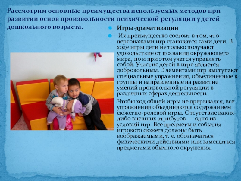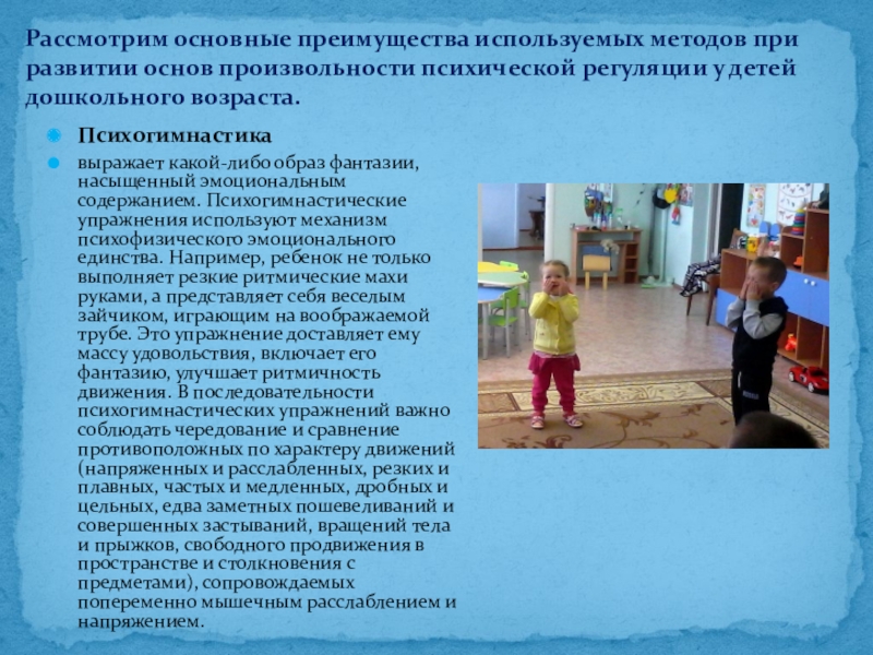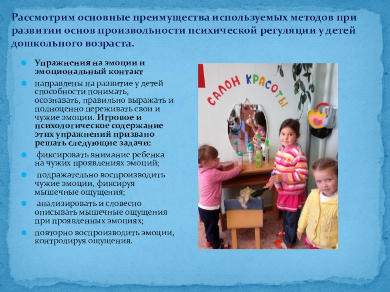 Рассмотрим основные преимущества используемых методов при развитии основ произвольности психической регуляции у детей дошкольного возраста.