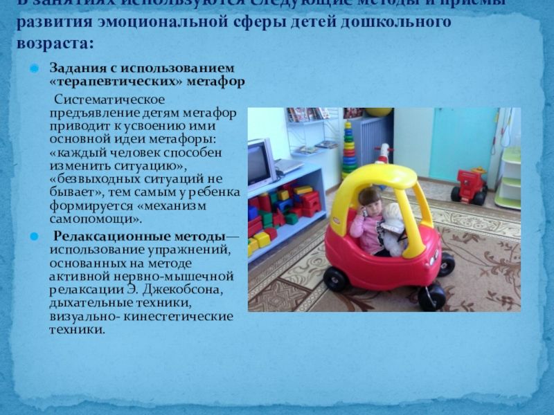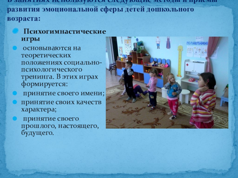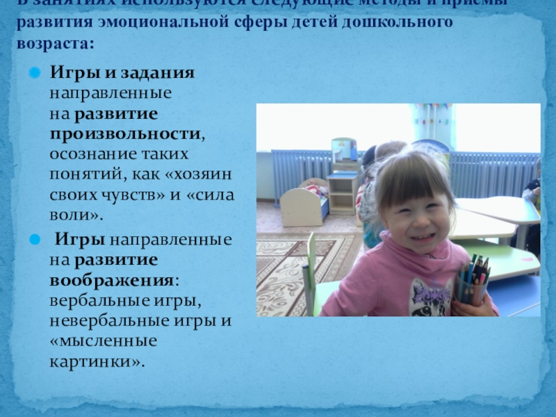 В занятиях используются следующие методы и приемы развития эмоциональной сферы детей дошкольного возраста: