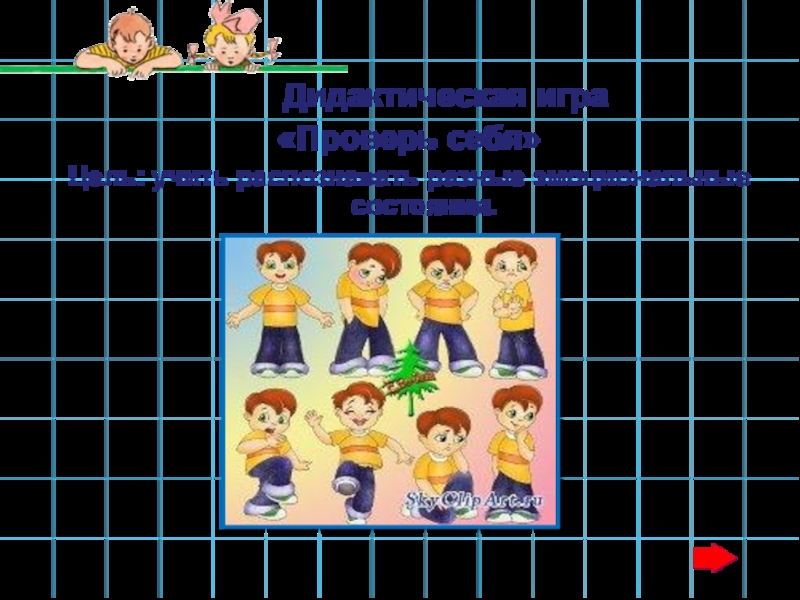 Дидактическая игра «Проверь себя»Цель: учить распознавать разные эмоциональные состояния.