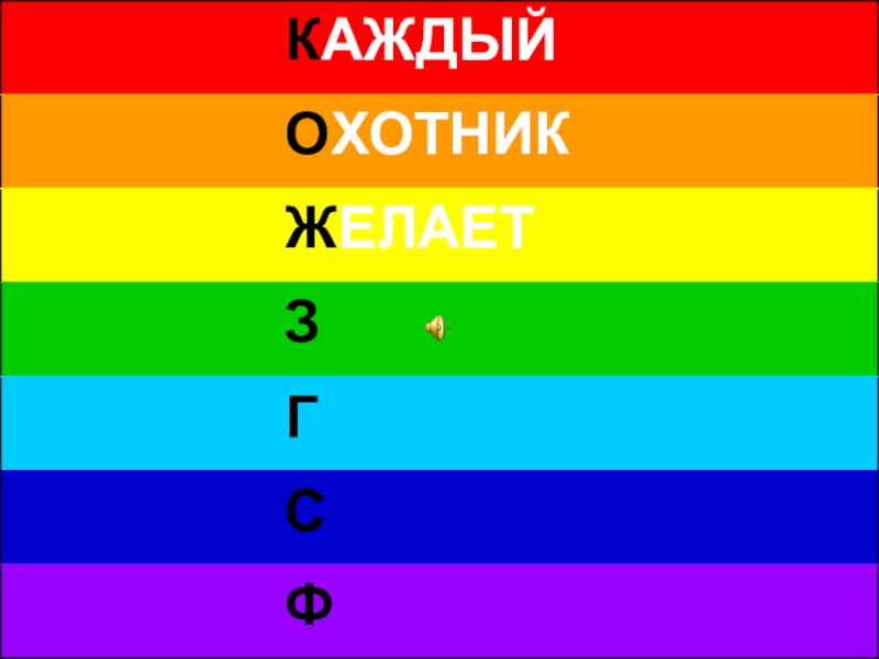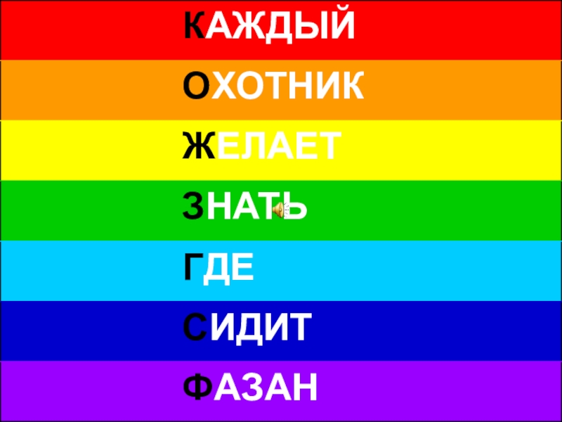 Слайд 1КАЖДЫЙ ОХОТНИК ЖЕЛАЕТ ЗНАТЬ...