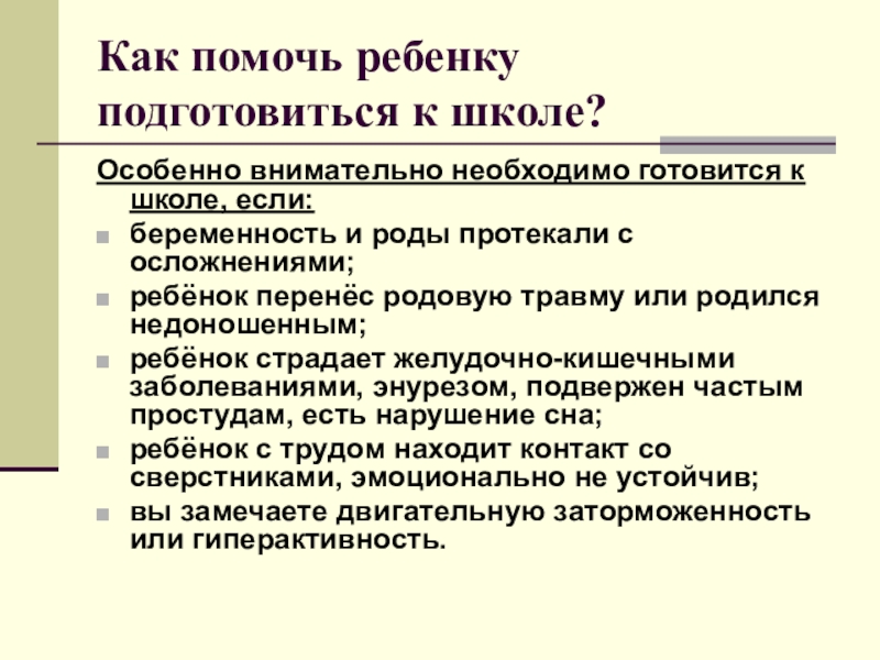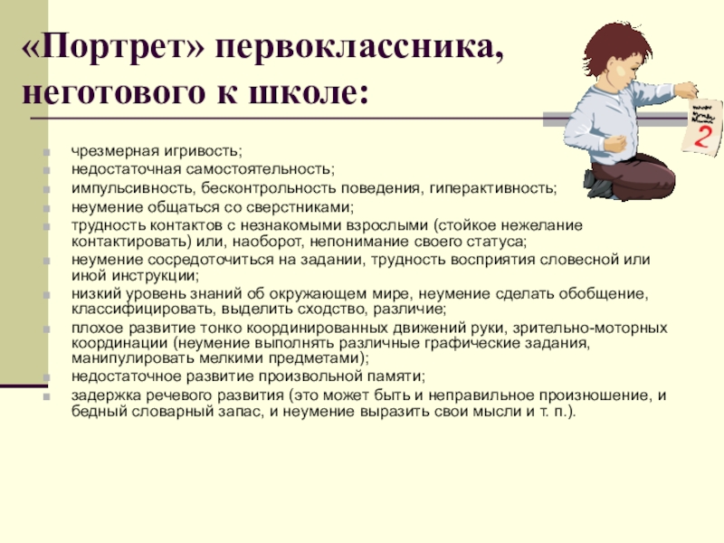 Слайд 13«Портрет» первоклассника, неготового к школе:
