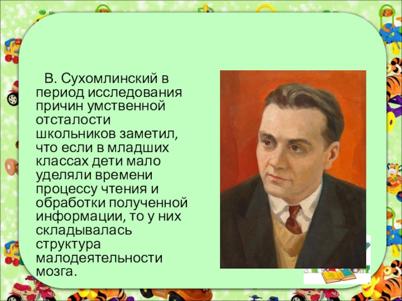 В. Сухомлинский в период исследования причин умственной отсталости школьников заметил, что