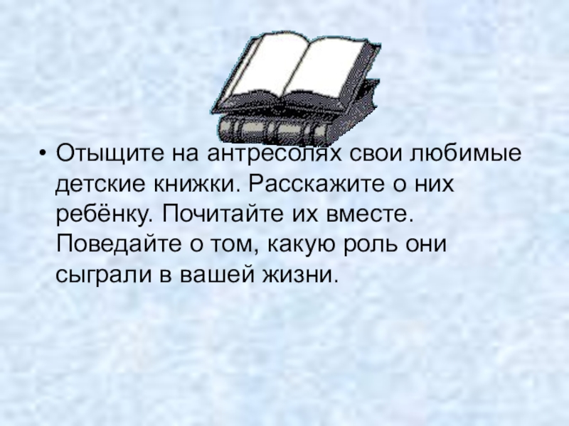 Отыщите на антресолях свои любимые детские книжки. Расскажите о них ребёнку. Почитайте их вместе. Поведайте о том,