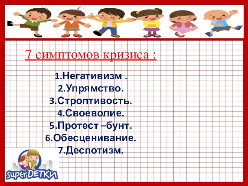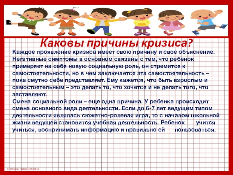 Негативные симптомы в основном связаны с тем, что ребенок примеряет на себя новую социальную роль, он стремится к самостоятельности, но в чем заключается эта самостоятельность – пока смутно себе представляет. Ему кажется, что быть взрослым и самостоятельным – это делать то, что хочется и не делать того, что заставляют.