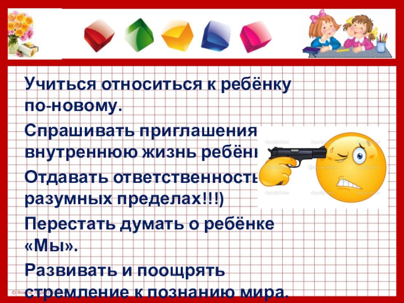 Слайд 15Учиться относиться к ребёнку по-новому.