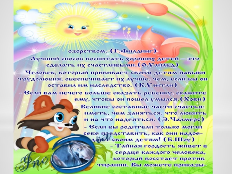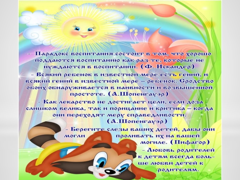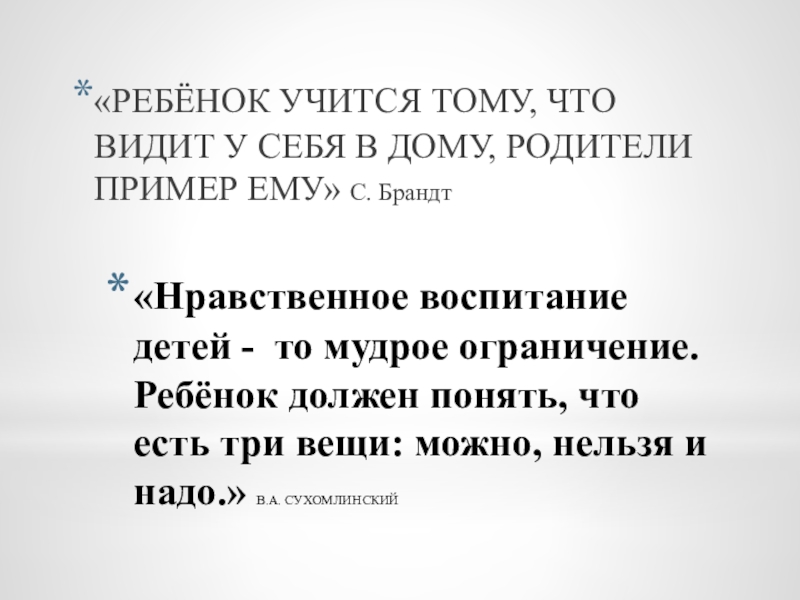 «РЕБЁНОК УЧИТСЯ ТОМУ, ЧТО ВИДИТ У СЕБЯ В ДОМУ, РОДИТЕЛИ ПРИМЕР ЕМУ» С. Брандт