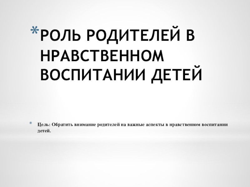 РОДИТЕЛЕЙ В НРАВСТВЕННОМ ВОСПИТАНИИ ДЕТЕЙ