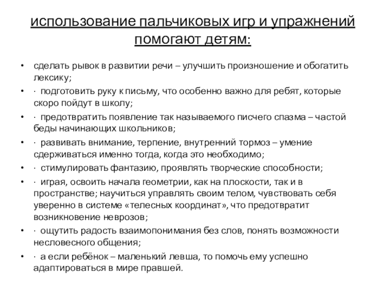 Слайд 10использование пальчиковых игр и упражнений