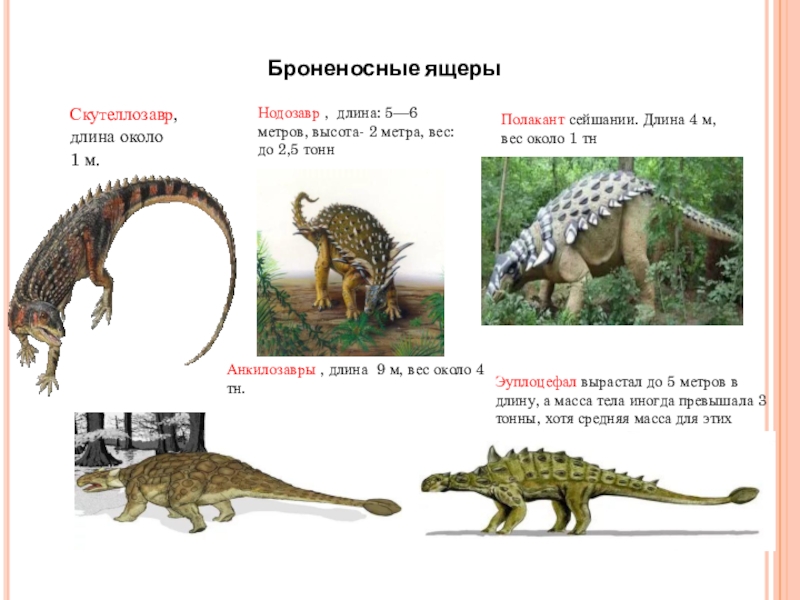 Анкилозавры , длина 9 м, вес около 4 тн.
