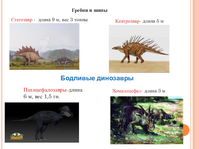 Пахицефалозавры-длина 6 м, вес 1,5 тн.