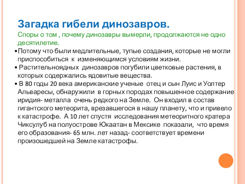 Учёные нашли повышенное содержание сажи в слоях на границе мелового и третичного периодов. Сажи там в 10 тыс. раз больше, чем «положено» при обычных лесных пожарах.