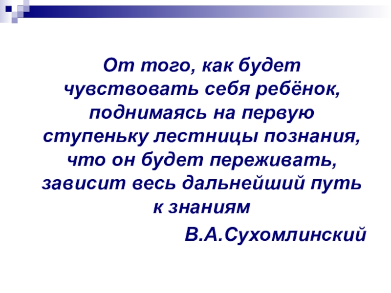 От того, как будет чувствовать себя ребёнок, поднимаясь на первую ступеньку лестницы познания, что он