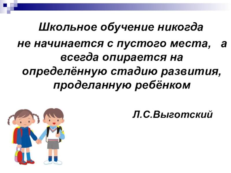 Школьное обучение никогда не начинается с пустого места, а всегда опирается на определённую стадию развития, проделанную ребёнком