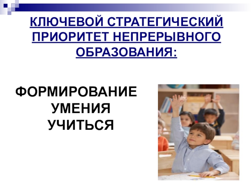 КЛЮЧЕВОЙ СТРАТЕГИЧЕСКИЙ ПРИОРИТЕТ НЕПРЕРЫВНОГО  ОБРАЗОВАНИЯ:ФОРМИРОВАНИЕУМЕНИЯ УЧИТЬСЯ