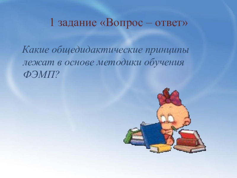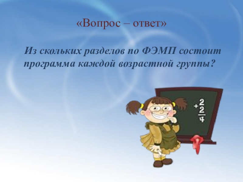 не очень большое место и в основном заключается в вопросах к детям. Характер постановки вопроса зависит от возраста и от содержания конкретной задачи.