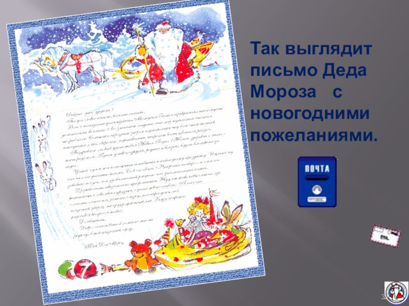 Слайд 32Так выглядит письмо Деда Мороза с новогодними пожеланиями.